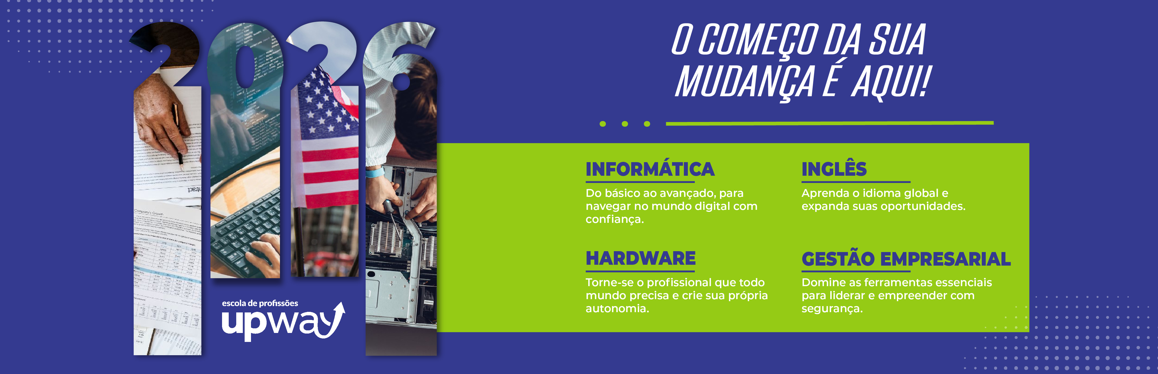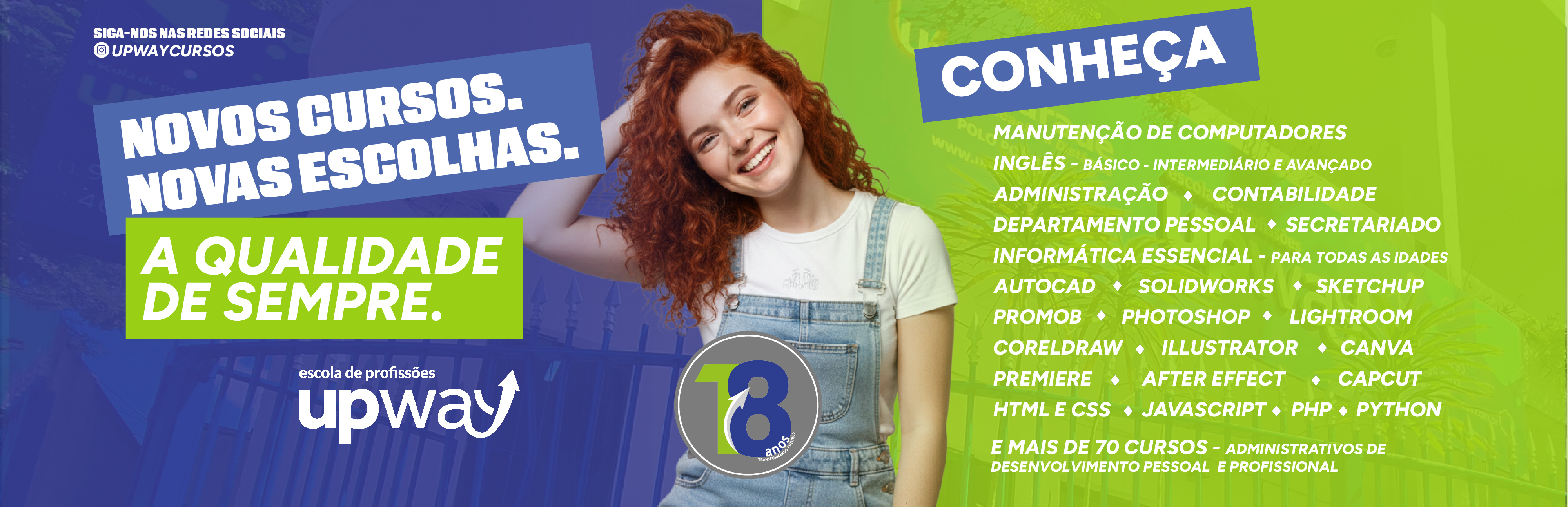 Em 2019, com onze anos de existência, passamos a nos chamar UpWay. A UpWay é uma escola de profissões com o objetivo de ajudar cada vez mais pessoas a conquistarem seus sonhos, mudando suas vidas para melhor.